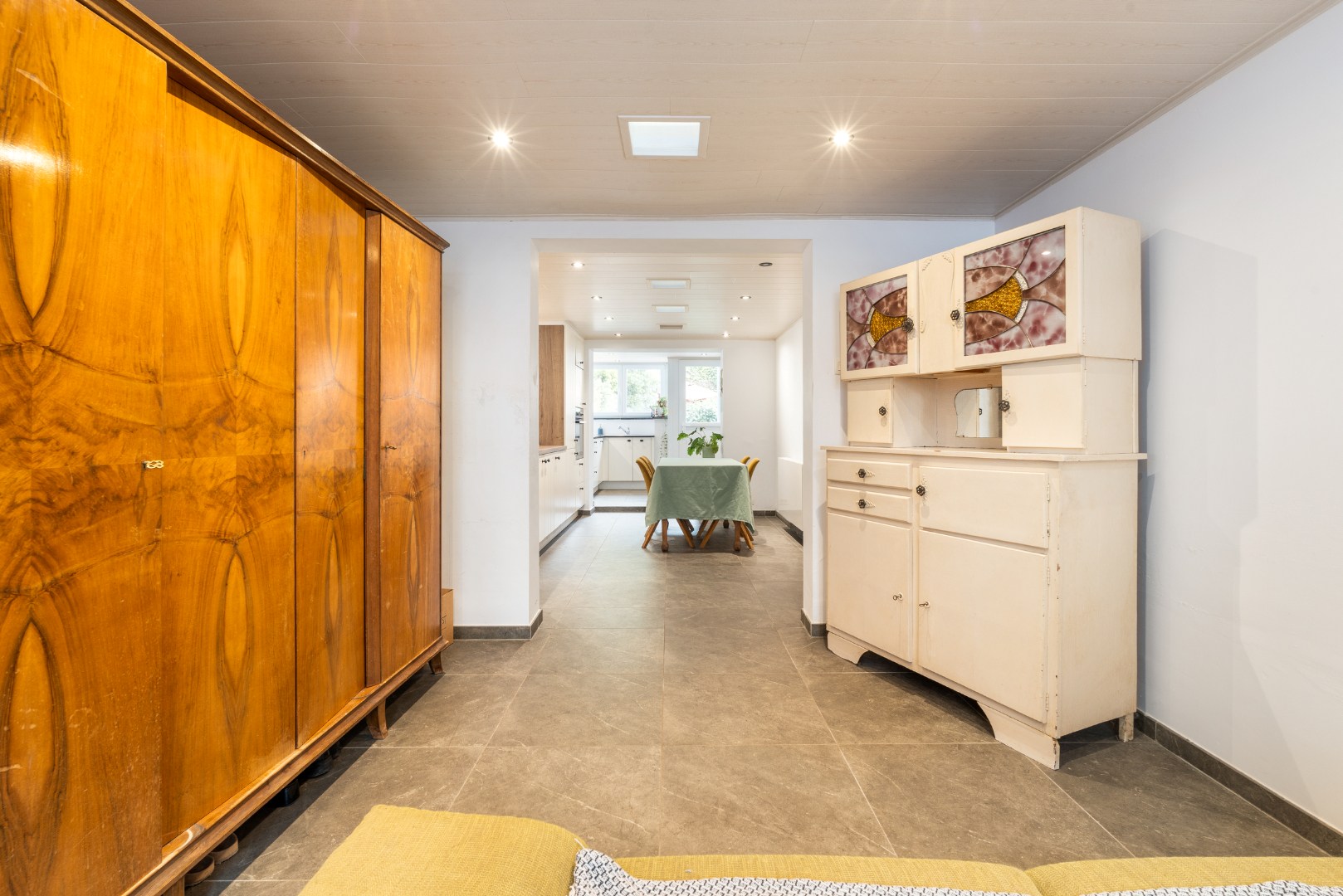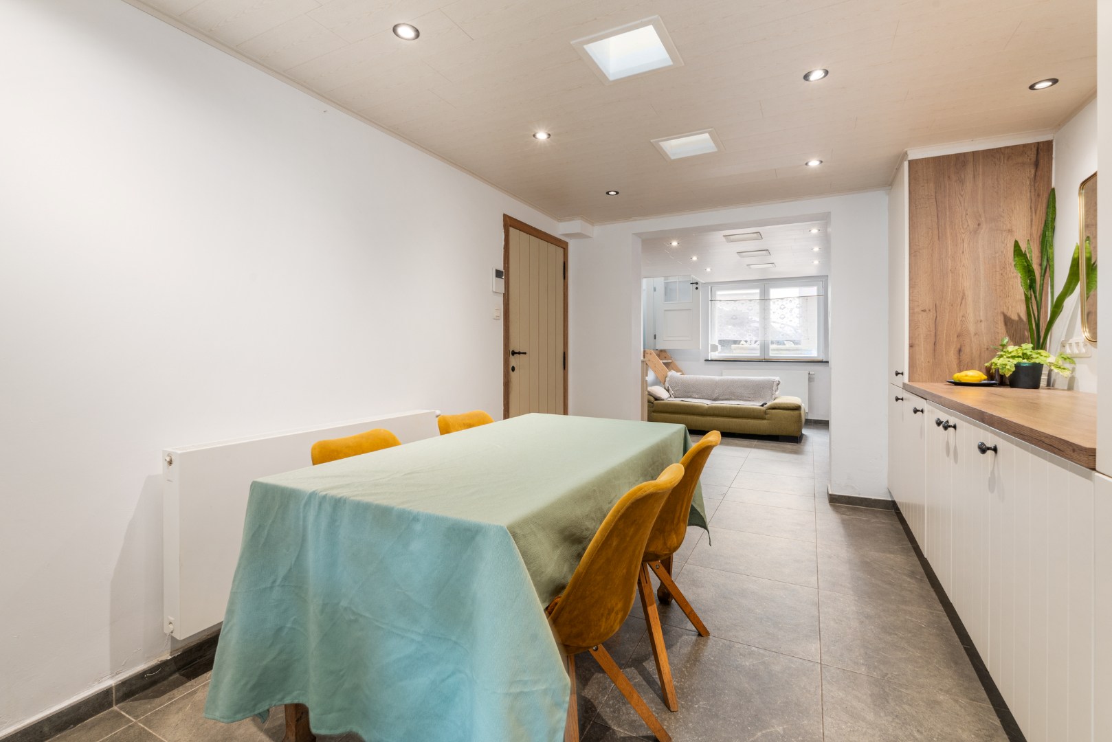 Op het sous-sol niveau vindt u een vernieuwde keuken met veel opbergmogelijkheden en kwalitatieve toestellen (gasfornuis, dampkap, ingebouwde koelkast, vaatwasser en oven). De onderhoudsvriendelijke keramische tegelvloer geeft een moderne ... look.